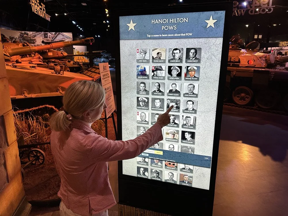 As visitors leave the exhibit, they can learn more about all of the Prisoners of War who were kept at the Hanoi Hilton through an interactive touchscreen outside the exhibit. Visitors may learn about their life before, during, and after their time at the Hanoi Hilton - those who returned and those who, tragically, did not.